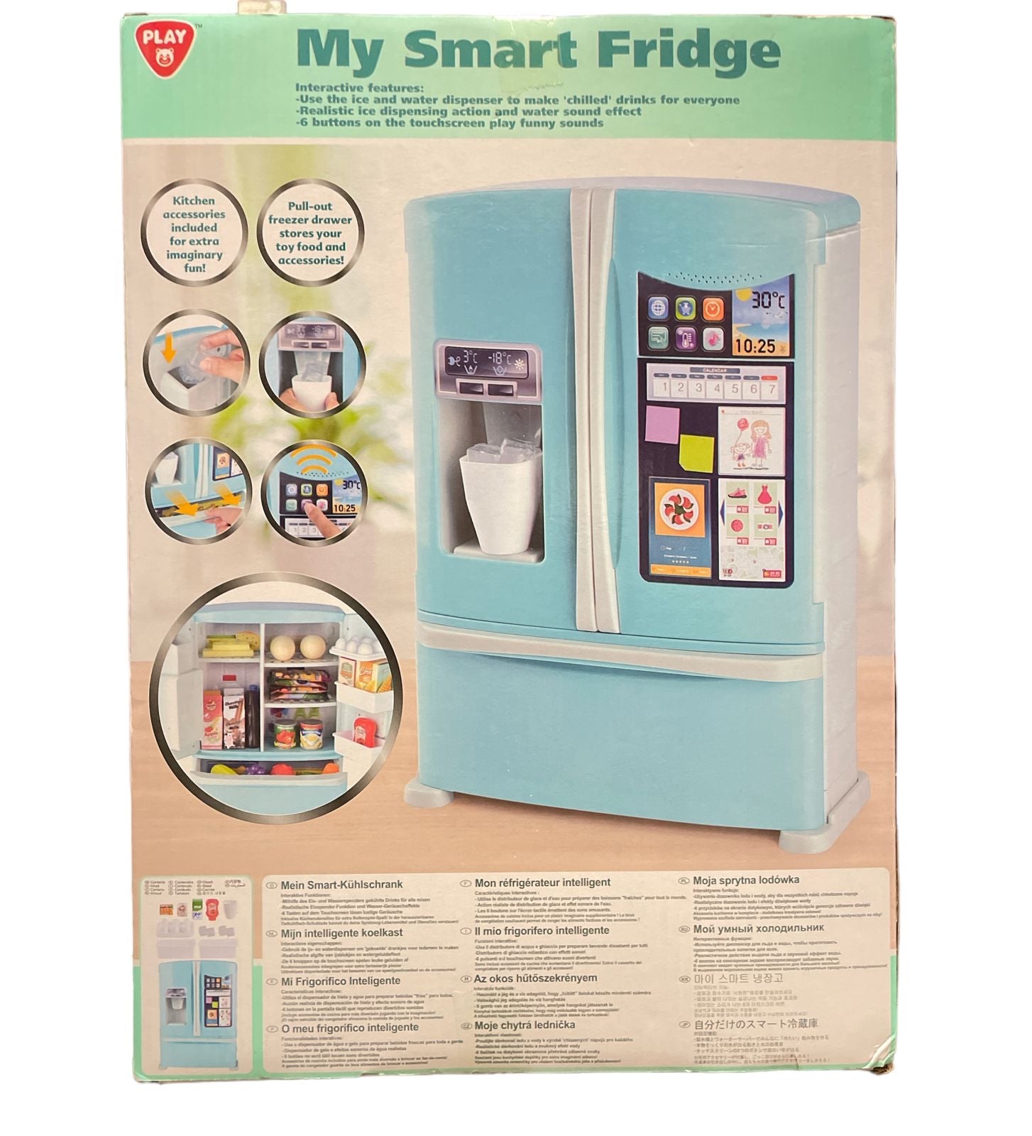 - Funciones interactivas: Luces LED y sonidos que imitan el funcionamiento de un refrigerador real.