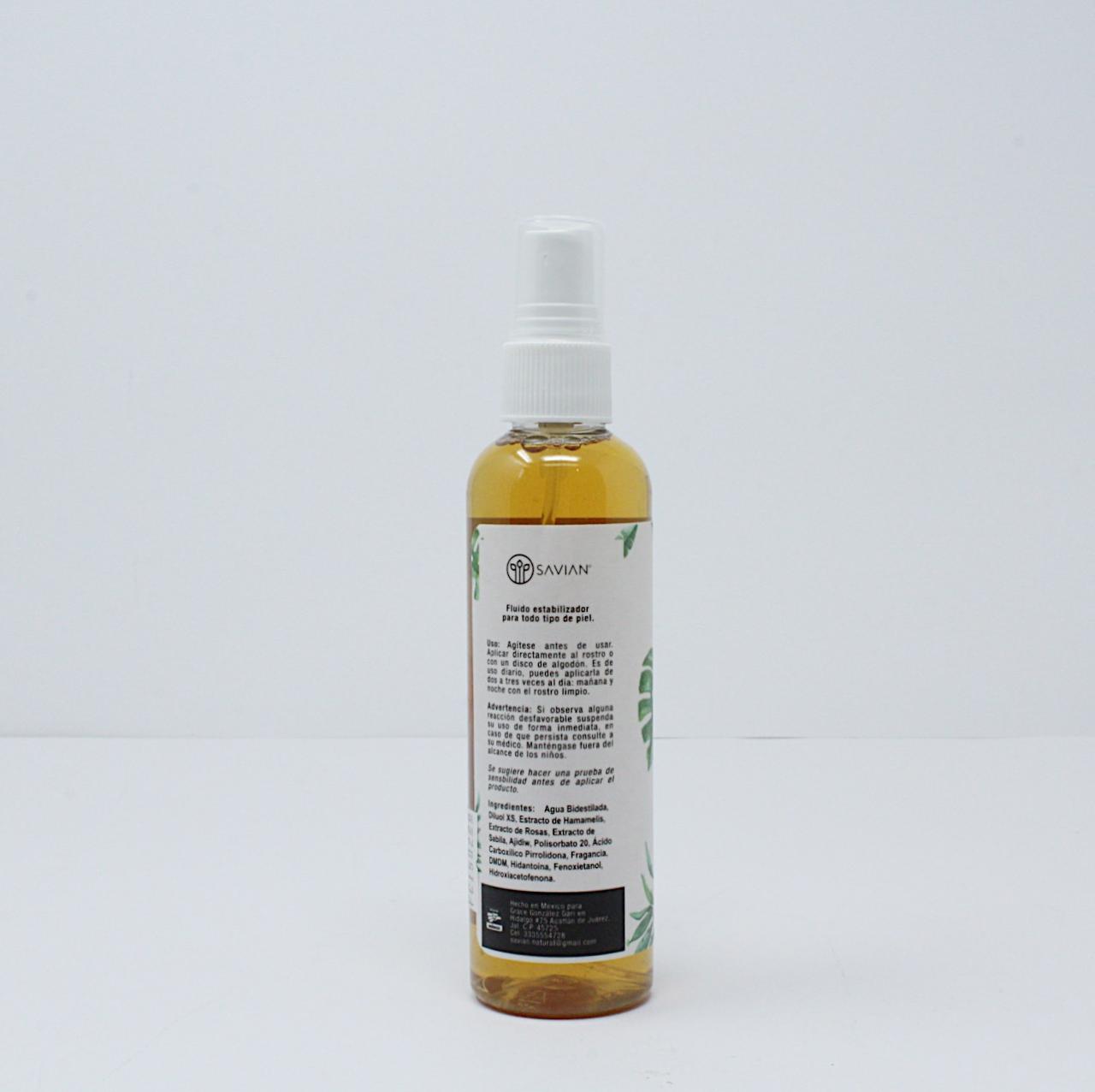 Contiene Extracto de Hamamelis, reconocido por sus propiedades astringentes y antiinflamatorias, que ayuda a reducir la apariencia de los poros y controlar el brillo. El Extracto de Rosas tonifica y aporta un efecto calmante, mientras el Extracto de Sábila hidrata, regenera y suaviza la piel, evitando la sensación de tirantez.